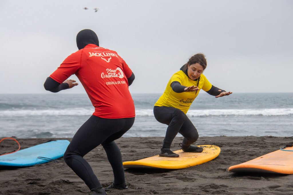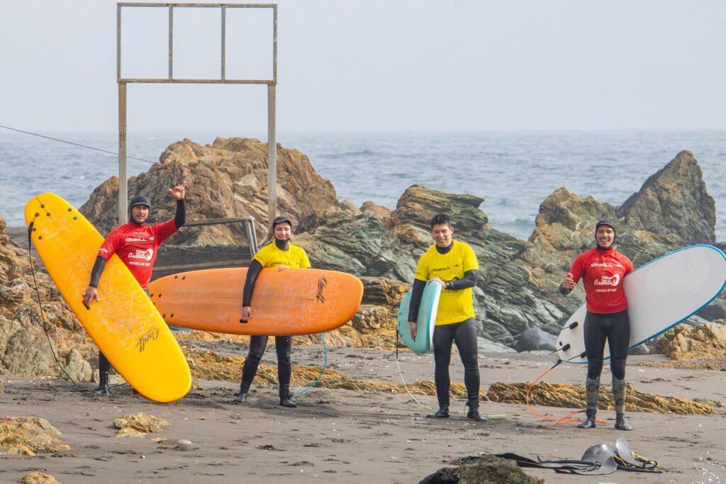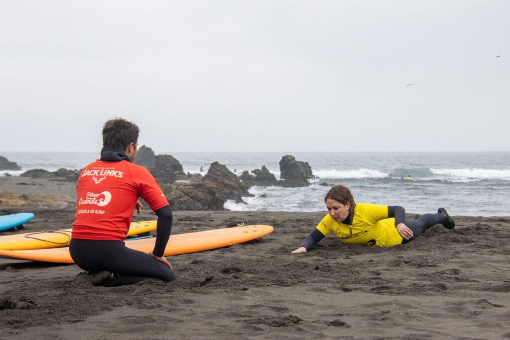 La escuela de surf Playa Grande es sin duda una de las mejores de todo Pichilemu. Se encuentra ubicada en la playa principal de Punta de Lobos, donde cuentan con instructores certificados en clases y primeros auxilios, además de equipamiento nuevo y de primera calidad. Aquí puedes tomar clases individuales o grupales y si ya tienes experiencia, puedes arrendar la tabla y el traje para lanzarte al agua a practicar por tu propia cuenta. Esta escuela de surf también se caracteriza por realizar campamentos y clases de surf inclusivo donde se realiza un trabajo diferencial con niños y jovenes discapacitados.