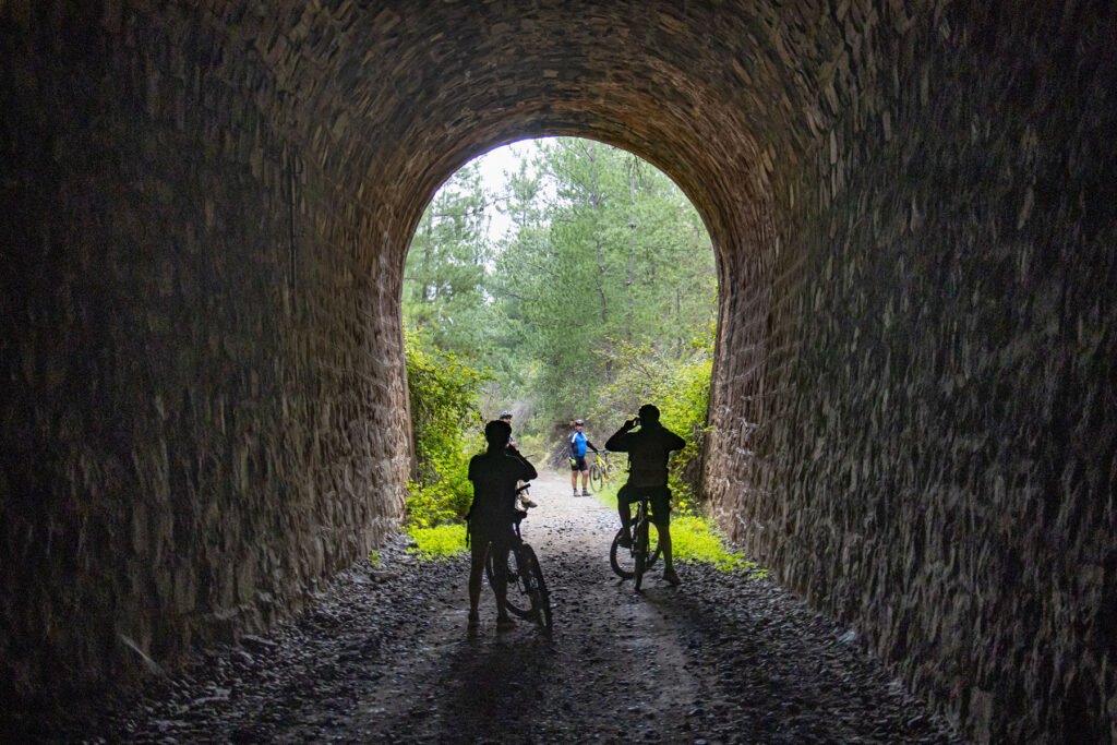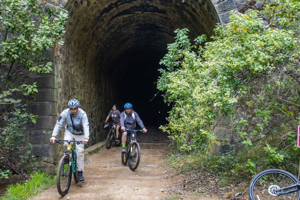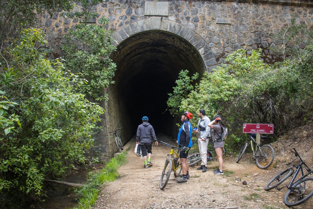 Disfruta de una experiencia increíble en bicicleta que mezcla la adrenalina y el deporte con un viaje al pasado que te permitirá recorrer las antiguas vías, estaciones y túneles por donde pasaba el ferrocarril que alguna vez llegó a Pichilemu. El tour que tiene unas 5 horas de duración, comienza saliendo en grupo desde Pichilemu, hasta la estación Larraín Alcalde donde nos esperan las bicicletas con las que nos introduciremos a través de senderos y caminos forestales, pasando por distintos hitos como el paso superior "Las Mulas" y la antigua Estación "El Lingue", para luego pasar por un primer túnel, corto y expedito, antes de llegar al Túnel el Árbol, que tiene una distancia exacta de 1960 metros (casi 2 km.) en una linea recta perfecta que permite ver su salida como un punto ínfimo de luz en medio de toda la oscuridad. Llegando a la salida del túnel, tomaremos un descanso para emprender el regreso por ambos túneles y finalizar con un increíble descenso. ¡Ideal para terminar el tour con una buena inyección de adrenalina!